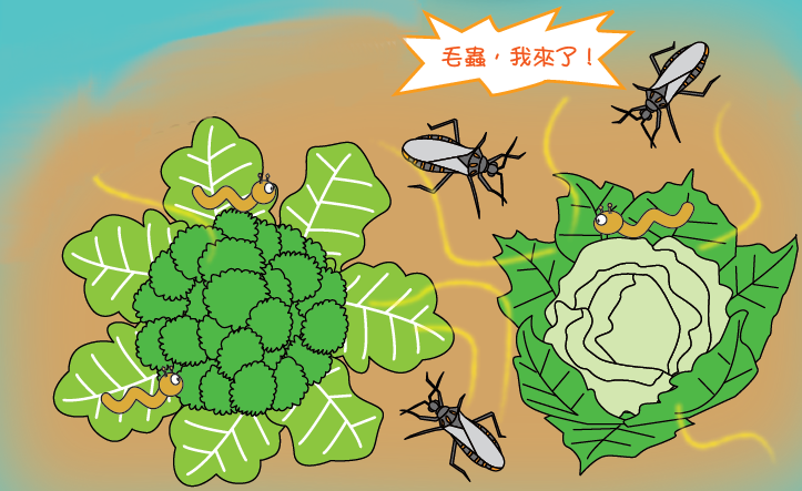 西蘭花和椰菜會釋出一些吸引錐獵椿亞科昆蟲的氣體,這種昆蟲會吸毛蟲的血,令進食葉片的毛蟲死亡。