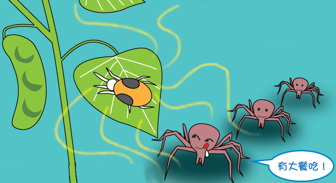 當扁豆被二斑葉蟎吃掉葉子時,就會向二斑葉蟎的天敵智利小植綏蟎發出訊號,吸引它來吃掉二斑葉蟎。
