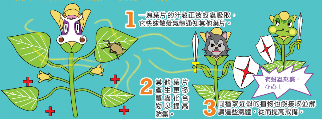 除了提升自身防禦之外,植物亦會釋放氣體向其他物種求援。看看下列不同植物的生存攻略吧!