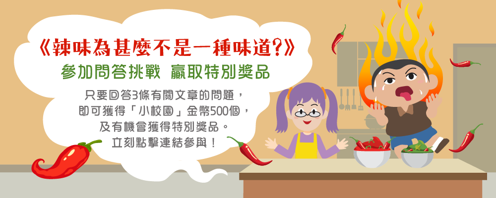同學們,你們喜歡吃辣嗎?吃辣時,舌頭灼熱麻痺的感覺有時令人欲罷不能。我們常說「辣味」,但你可知道,其實辣並不是一種味道?
