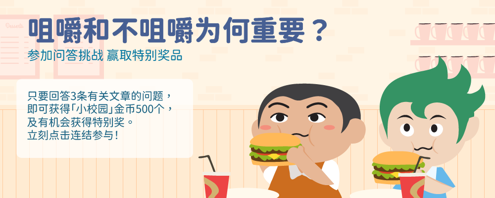 - 只是把食物咬成小块仍然不足够,还要嚼烂并与口水混合,变成半液状的「食团」,才能够更易沿着食道滑下,避免噎住。
