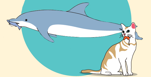 猫的情况跟海豚相似,因为吃的食物有时太大,所以要咬成小块。