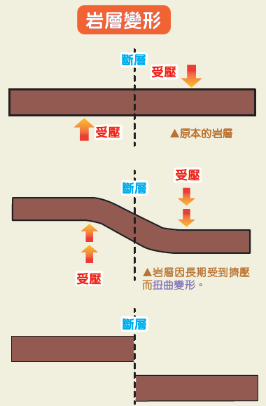 这股巨大的能量从哪里来?地质学家发现,地壳中的岩石因为板块活动受压变形时,会储存大量弹性能。当岩层突然断裂,就令弹性能猛然释放。