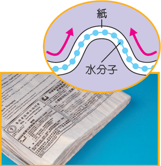 这是因为水开始蒸发时,表面张力使水分子聚集在一起往上升,导致纸张受力不均匀。风干以后,纸纤维之间卷曲的排列固定下来,令纸变得凹凸不平。
