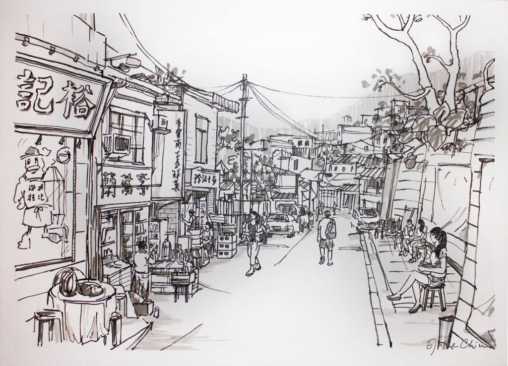 Elaine 就读于大学时所举办的画展Heartbeat in Hong Kong中所展示的钢笔画, by Elaine Chiu