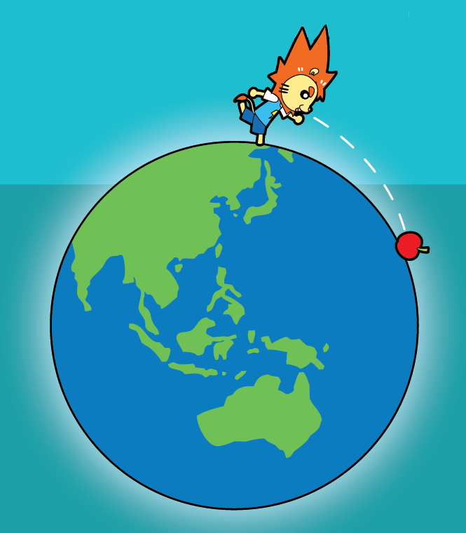 ▲如果用适当大的力度抛,苹果就会不着地,并不停绕地球转。这时苹果的速度叫「环绕速度」。