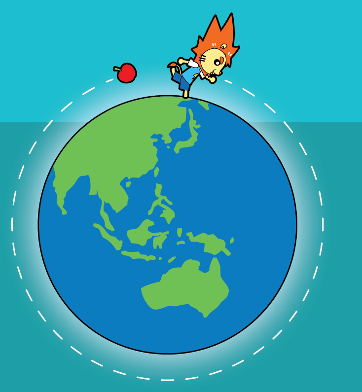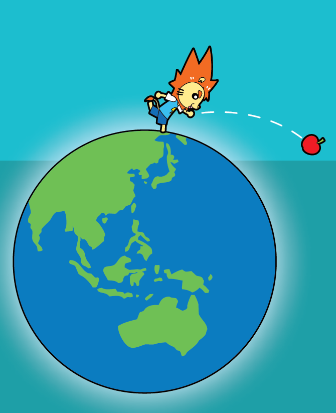 ▲如果用更大的力度抛,苹果便可摆脱地球的重力向外逃,这个速度叫作「逃逸速度」。