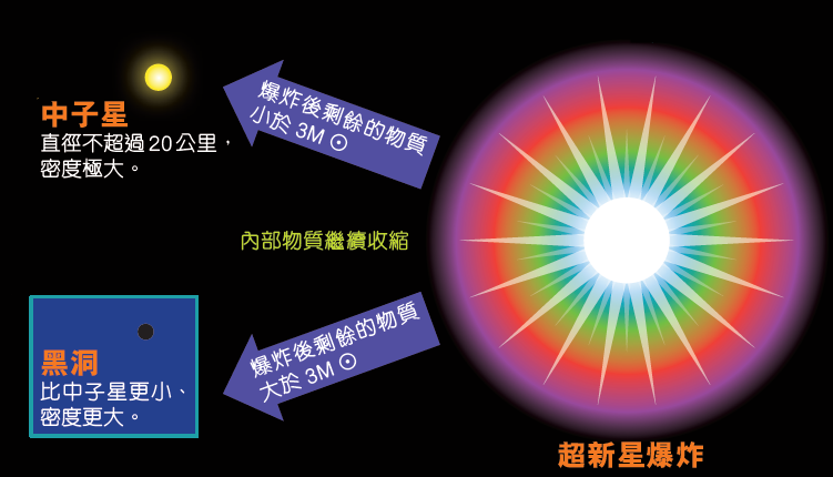 如果爆炸后剩余的物质大于3M☉,就会产生黑洞。