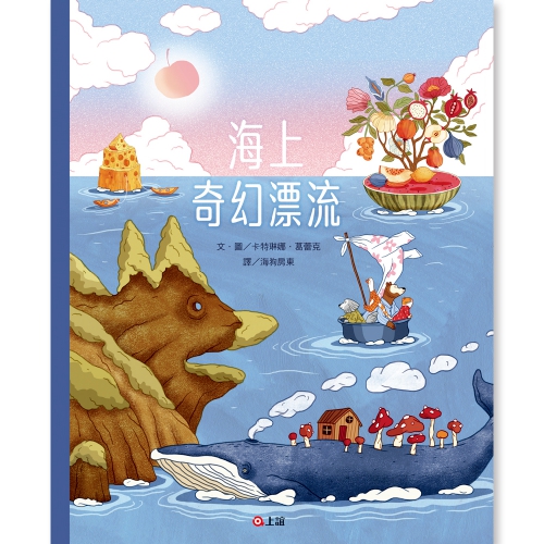 小狗、猫咪、鹅先生跟大熊住在大海中央的一座小岛。一天,狂风暴雨摧毁了牠们的家园,于是牠们乘坐着大浴缸,在海中心展开一段奇妙的旅程:在香喷喷的面包岛看见鹅宝宝在吐司上钓鱼;又在甜丝丝的水果岛欣赏像樱桃一样的太阳;更在牛奶喷泉猫之岛,看见猫咪在牛奶泡温泉——牠们最终能找寻到新的家园吗?