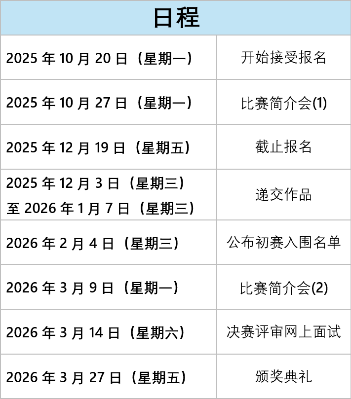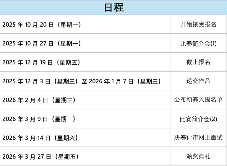 比赛简介会已顺利举行,相关简报资料可按此下载。(2025年12月2日更新)