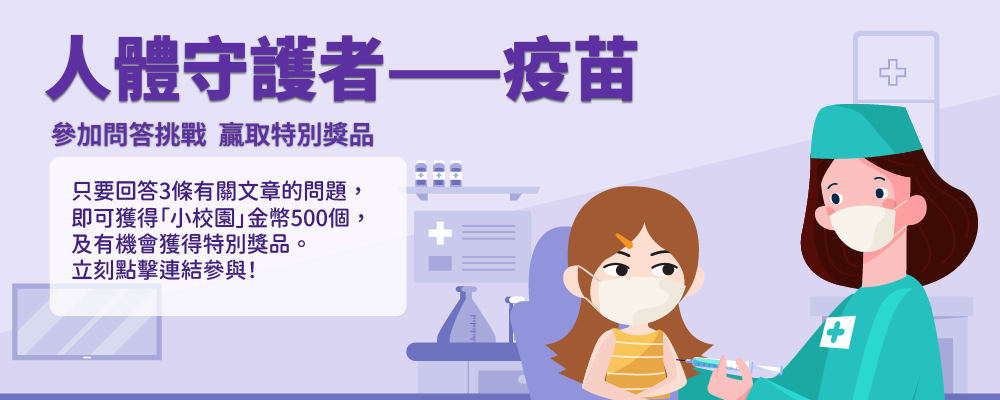 每年到了流感高峰期,專家都會呼籲人們接種流感疫苗,加強預防流感重症及死亡個案。到底甚麼是疫苗?疫苗怎樣守護我們的健康?現時有多少種不同的疫苗?一起來了解人體的守護者——疫苗吧!