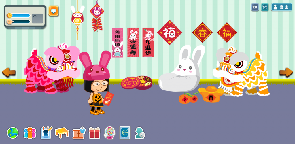 你也可以為小校園內的家添置多款賀年家具和換上新春造型服飾。若金幣不足也不要緊,你可以隨時到學習大樓玩小遊戲賺取金幣。特別留意,「新春特別任務」已經推出,在限期內完成遊戲,將可獲得額外的金幣!由現在起登入小校園,就可以收到小校工派發給各位的大利是和一個「全年扭扭樂」代幣以抽取一款全新新年飾物,於1月31日或之前向小校園內的AI Buddy兔爾斯說「祝你兔年快樂」或「Happy Year of the Rabbit」,更可獲贈額外新年禮物!