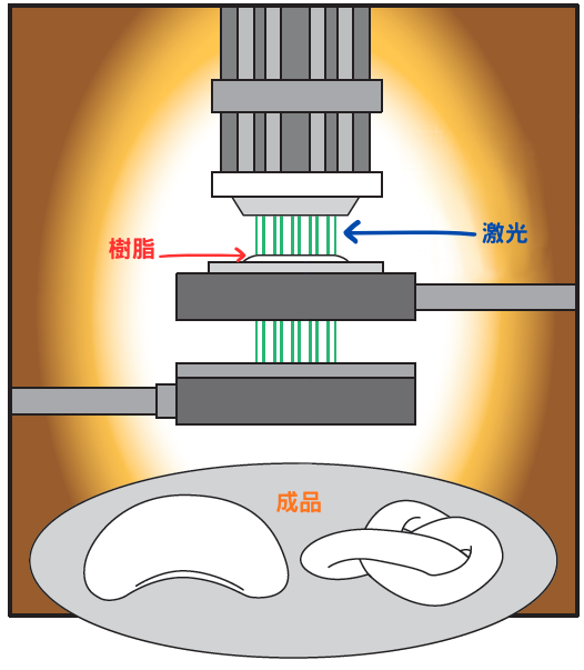 將多條細密的激光聚焦在樹脂的某一點,可使樹脂瞬間凝固,再不斷變動焦點以塑造特定形狀,那就是多光子光刻技術。