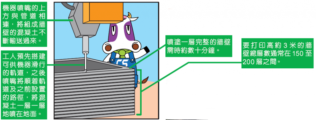 3D房屋的打印原理與小型3D打印機類似,都是逐層堆積加熱後的材料,再凝固出先前設計好的立體形狀。