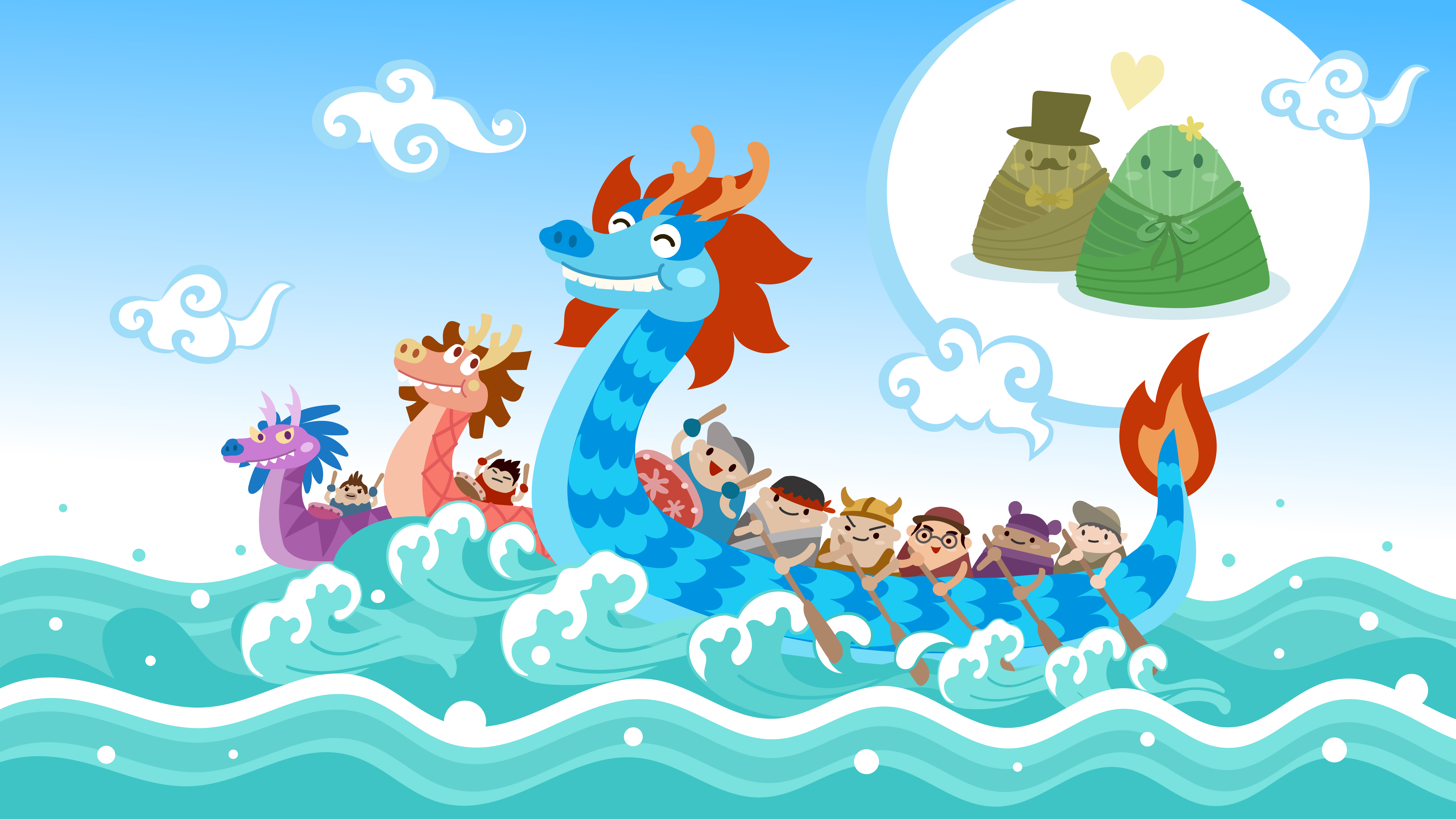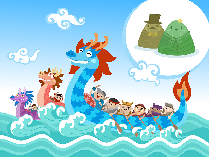 In the vibrant village, excitement pervaded the air for the annual Dragon Boat Festival. It was a day filled with cheers, competition, and delicious treats. A young boy was especially excited to watch the dragon boat races right from the riverbank! The boats were bright and colourful, shaped like dragons with scales painted in dazzling patterns, and there was a drum in the frontmost position on the boat.