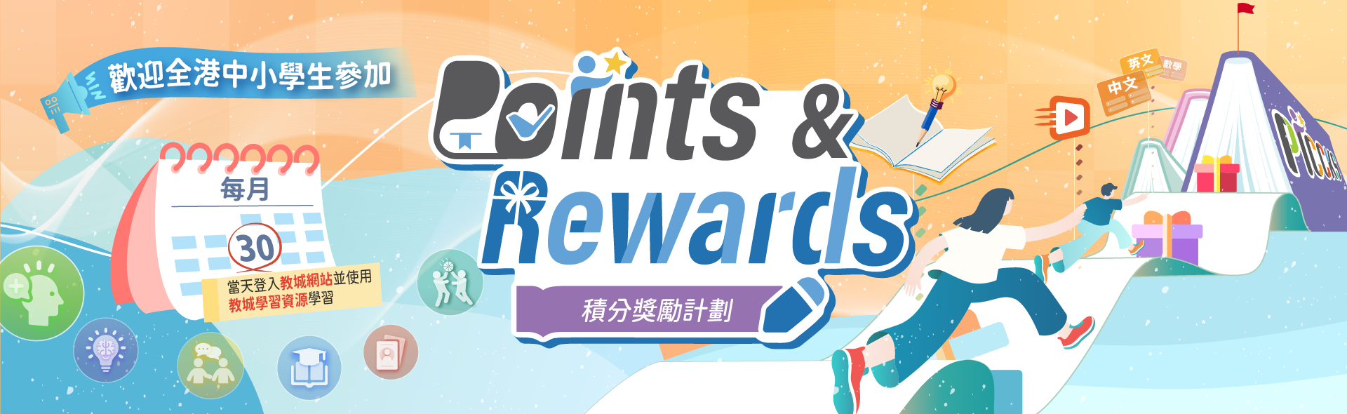 隨着全球數字化發展,數字教育已成為提升競爭力與培養人才的關鍵。香港教育城(教城)推出「Points & Rewards」,首階段將在全港中小學校推行。計劃透過累積Learning Point(學習積分)的獎勵制度,鼓勵學生善用教城的網上學習資源,藉此培養學生的電子學習能力和自主學習能力,使其更能適應未來的科技教育。
