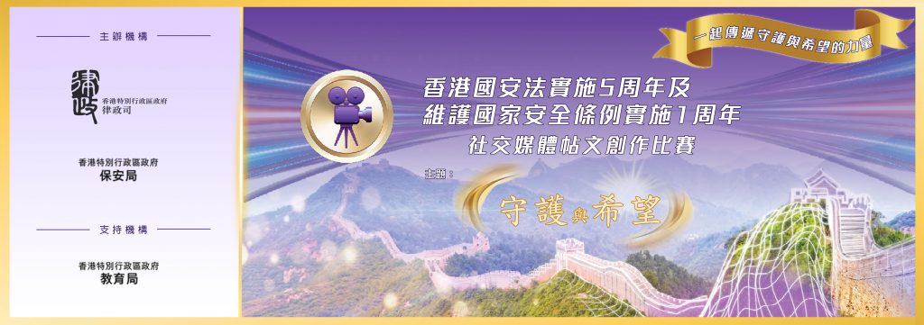 《香港國安法》快將實施五周年,《維護國家安全條例》亦已於2024年3月刊憲生效。在這別具意義的時刻,律政司聯同保安局特別舉辦社交媒體帖文創作比賽,並獲教育局為支持機構,現邀請全港中小學生發揮無窮創意,以「香港國安法 ─ 守護與希望」為主題,製作社交媒體帖文,以生動方式,傳遞有關法律如何為我們築牢維護國家安全的屏障的訊息,並以法治原則,守護社會安定及市民的生活,為社會各界及市民帶來新機遇及新希望,讓我們的未來更豐盛、更多彩多姿。
